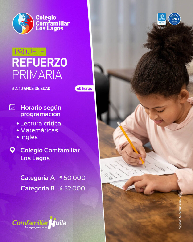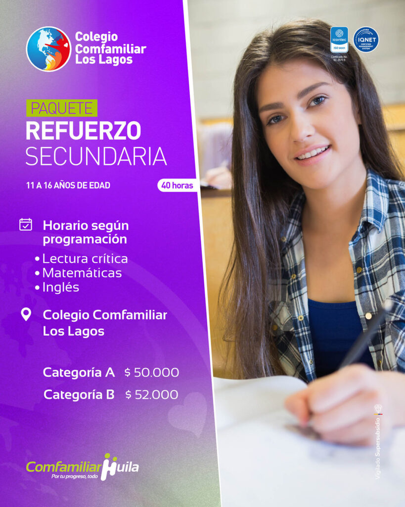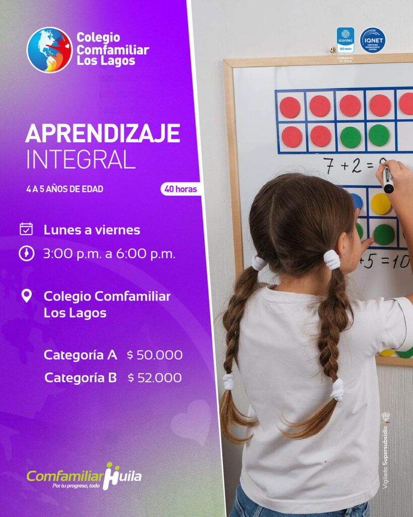Los cupos son limitados. Para más información e inscripciones, los interesados pueden acercarse directamente al Colegio Comfamiliar Los Lagos o a los números: